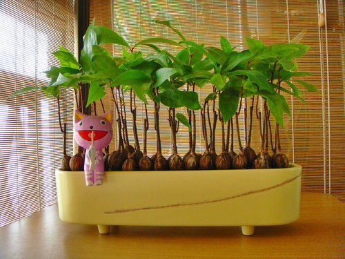 據說很新鮮,所以給我一包種看看。破殼後插在土裡等發芽。