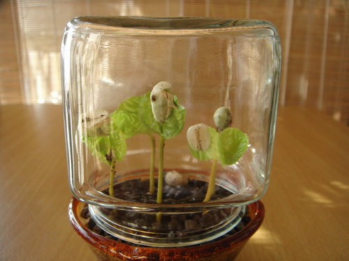 咖啡很難脫殼,所以讓它住在玻璃屋中。