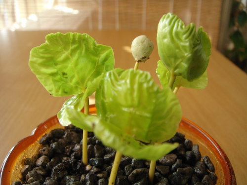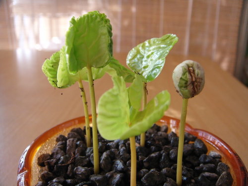 脫殼非常快,而且一點傷痕都沒有,葉緣一點都沒有焦黑,一點都沒有破,種過咖啡的人一定知道我在說什麼,呵呵。